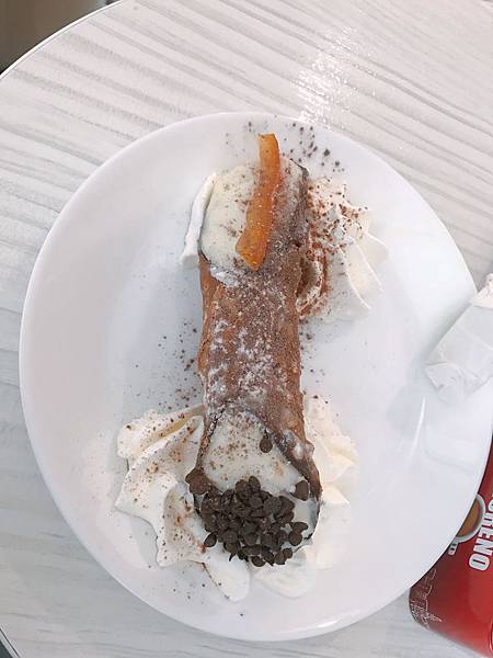 甜點是點西西里起司捲(Cannoli),外皮很酥脆,內餡雖然加了巧克力,外面還有擠鮮奶油,但吃起來不會很甜,真心覺得義大利的甜點真的很合我胃口。