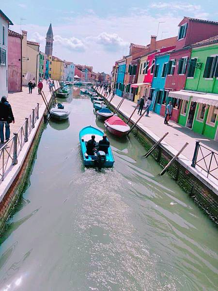 接著轉搭小船到彩色島,一路上可以看到威尼斯許多漂亮的建築,果然隨便拍都很美。