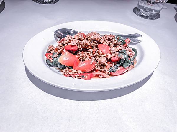 辣炒牛肉,第一道菜就辣到讓人流鼻涕,不過這道菜非常下飯,雖然辣但大家還是吃光光了。