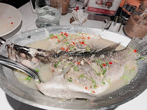 檸檬清蒸魚,如果吃不習慣的人可能會覺得味道有點奇特,因為吃起來偏酸,但我覺得很下飯,可以將魚下方的湯汁淋在飯上,非常的開胃。