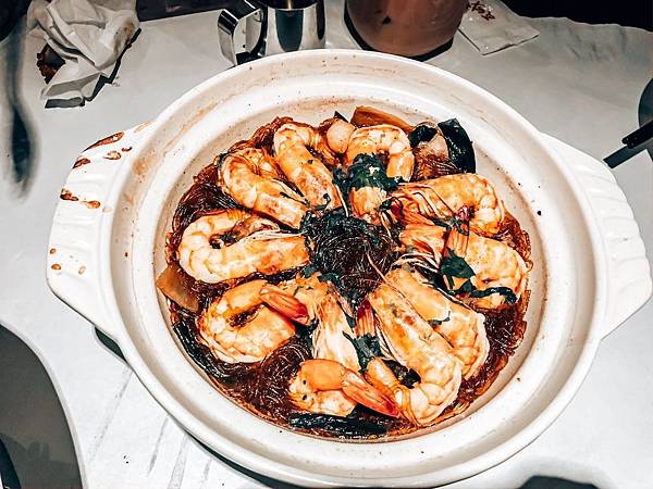 冬粉鮮蝦煲,裡面的鮮蝦很肥美又多汁,下方的冬粉很入味,吸收了醬汁。